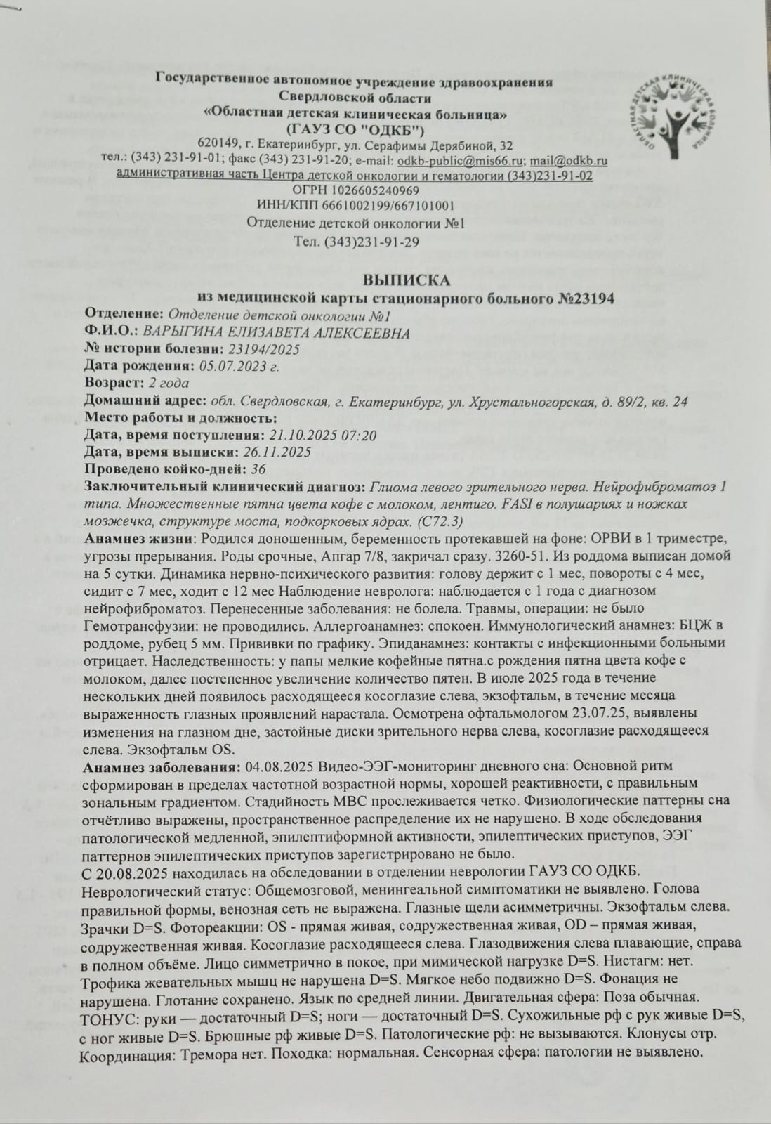 Но летом 2025 года состояние Лизы резко ухудшилось. Она стала вялой, перестала радоваться игрушкам, плохо ела, часто плакала от боли… Эти крики до сих пор звучат у меня в голове. Мы начали новые обследования, и в конце августа услышали диагноз, от которого у меня буквально перехватило дыхание — глиома зрительного нерва.